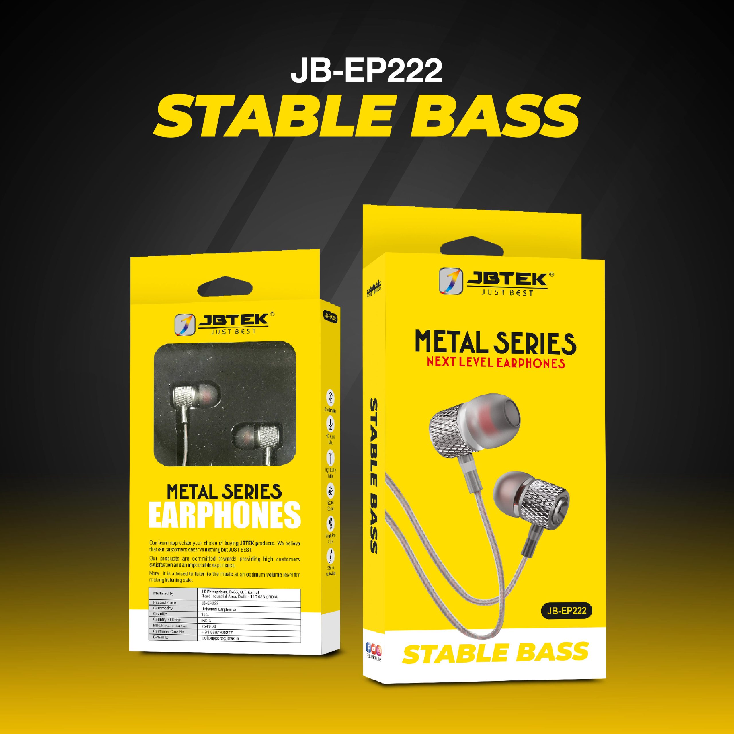Home Shop Earphones WIRED EARPHONE JB-EP222 | In-ear Wired Earphone | Metal Earphone
